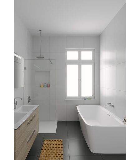 Riho freistehende Badewanne Adore B2W, 180x86 cm, Riho Fall weiß glänzend, BD04C05 Produktdetails: Fassungsvermögen (Liter): 226 Volumen (Liter): 296 Ablauf: Mittelablauf Beschichtung: ohne Beschichtung Rutschhemmung: ohne rutschhemmende Oberfläche Wannenfüsse: mit Füße / Fußgestell Lieferumfang: Inkl. angeformter Wannenschürze (ohne sichtbare Naht) inkl. Füsse und Ablauf.- Überlaufgarnitur als Schlitz, RIHO Fall Wasserzulauf über den Überlauf mit chrom farbigen sichtbaren Teilen, komplett montiert. Inkl. Klick Klack Ablaufventil in chrom Schutzart: Leuchtmittel inklusive: Modelbezeichnung/Serie: Adore Oberfläche: Acryl weiß glänzend Breite (mm): 860 Höhe (mm): 565 Länge (mm): 1800 Gewicht (kg): 45 Lieferant: RIHO Sanitär-Vertriebs GmbH ...