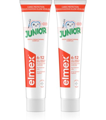 Elmex Junior 6-12 Years, 2x75 ml, Kinderzahnpasten für Kinder, Die Zahncreme Elmex Junior 6-12 Years reinigt perfekt die Kinderzähne, erhält ihre weiße Farbe und Gesundheit. Eigenschaften: schützt wirksam die Zähne ...