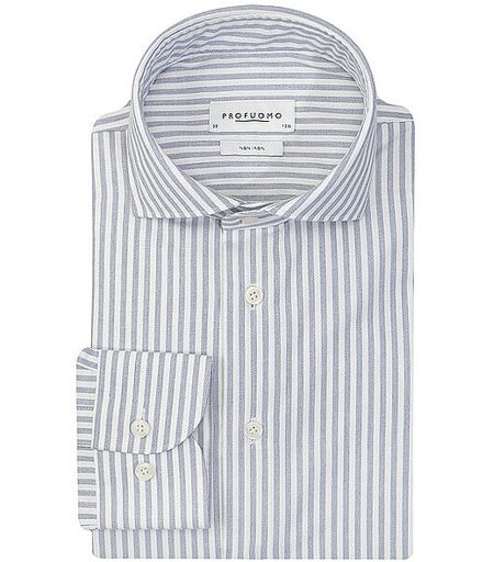Herren Hemd aus reiner Baumwolle Haifischkragen Langarm mit Manschette Schmal geschnitten Streifenmuster Schließt mit Knopfleiste Farbbezeichnung: Weiss/Marine Material: 100% Baumwolle ...