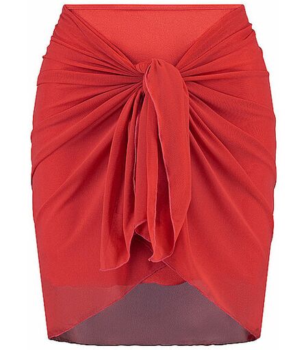 Glänzender Stoff Vielseitig tragbar: als Rock, Top oder Kleid Innenrock aus Badebekleidungsstoff Mesh-Material zum individuellen Binden Rote Farbe Material: 80% recyceltes Polyamid, 20 % Elasthan Farbbezeichnung: Red Shine ...