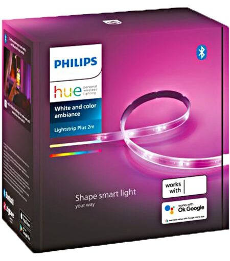 Mit diesem flexiblen Lightstrip kommt Licht in jeden Winkel des Zuhauses. Er kann unkompliziert über Bluetooth gesteuert oder über eine Philips Hue Bridge (nicht im Lieferumfang) verbunden werden, um die ganze Palette der smarten Lichtsteuerung nutzen. Der Lightstrip ist außerdem kürzbar: Der abgeschnittene Teil kann mit dem mitgelieferten Verbindungsstück an ein anderes Hue Lightstrip Plus Basis-Set (Version V4) oder nachträglich wieder angeschlossen werden. Die Länge des Lightstrips liegt bei zwei Metern. ...
