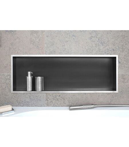 ESS BOX 10 Anthrazit Wandnische 60x30x10 cm mit Rahmen Edelstahl gebürstet, inkl. Rohbauset, BOX-60x BOX-60x30x10-A