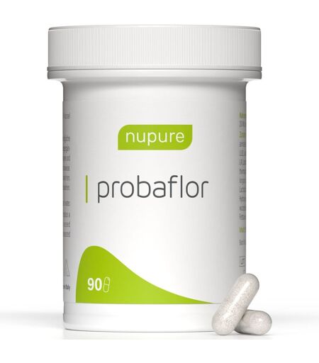 Bitte achten Sie auf eine abwechslungsreiche und ausgewogene Ernährung und gesunde Lebensweise.Nupure probaflor - 2-1 Rezeptur mit 11 Bakterienkulturen + InulinNupure probaflor enthält 11 ausgewählte Stämme Milchsäurebakterien und Bifidobakterien, die natürlicherweise den menschlichen Darm besiedeln. Dort sind sie Teil der sogenannten Darmflora. Nupure probaflor enthält mindestens 20 Mrd. KBE zum Ende der Haltbarkeit.Zusätzlich enthält jede Kapsel 30 mg Inulin. Dieser natürlich aus der Zichorie gewonnene Ballaststoff wird vom Menschen nicht verstoffwechselt. Gelangt er unverdaut in den Darm, kann er dort Bakterien als Nahrung dienen.Mit MilchsäurebakterienFür eine optimale Unterstützung der Verdauung wurden für nupure probaflor elf Bakterienstämme ausgewählt, die zu den natürlichen Besiedlern des Darms gehören, der sogenannten Darmflora: Bifidobacterium lactis Lactococcus lactis Lactobacillus plantarum Lactobacillus acidophilus Streptococcus thermophilus Bifidobacterium longum Lactobacillus rhamnosus Lactobacillus bulgaricus Bifidobacterium bifidum Lactobacillus salivarius Lactobacillus casei Sowohl Laktobazillen, als auch Bifidobakterien produzieren bei ihren Stoffwechselvorgängen unter anderem Milchsäure und senken so den pH-Wert in ihrer Umgebung. Einige krankheitserregende Bakterien können sich bei niedrigem pH-Wert schlechter bis gar nicht vermehren. Plus Inulin Zusätzlich enthält nupure probaflor den Ballaststoff Inulin aus der Zichorie. Für den Menschen nicht verdaulich, dient er als Nährstoff für einige der wichtigsten Darmbakterien. Vegetarische Kapselhülle Bakterienkulturen für den Darm reagieren sensibel auf die Magensäure. Nupure probaflor ist auf seiner Passage durch den Magen durch eine rein pflanzliche Kapsel besonders effektiv geschützt. Sie sorgt für eine sichere Freisetzung am Zielort Darm. Zutaten: Bifidobacterium lactis, Inulin, Lactococcus lactis, Lactobacillus plantarum, Lactobacillus acidophilus, Streptococcus thermophilus, Bifidobacterium longum, Lactobacillus rhamnosus, Lactobacillus bulgaricus, Bifidobacterium bifidum, Lactobacillus salivarius, Lactobacillus casei. Füllstoff/Bulking agent: Maisstärke/corn starch, Modifizierte Stärke/Corn starch pregelatinized. Kapselhülle/Capsule shell: Hydroxypropylmethylcellulose, Pektin. Trennmittel/Anticaking agent: Magnesium stearate Besonderer Schutz durch spezielle Verpackung Nupure probaflor® wird unter Luftausschluss verpackt und verschweißt. Um die Kapseln nach dem Öffnen vor Feuchtigkeit zu schützen, verwenden wir patentierte Activ-VialTM Dosen. Diese sind mit einer speziellen Auskleidung versehen, die eindringende Feuchtigkeit sofort absorbiert. Dadurch erhöht sich die Überlebensdauer der Bakterien. Feuchtigkeitsschutz auch nach dem Öffnen Das Produkt sollte stets außerhalb der Reichweite von kleinen Kindern gelagert werden. Die angegebene empfohlene tägliche Verzehrmenge darf nicht überschritten werden. Nahrungsergänzungsmittel dienen nicht als Ersatz für... ...