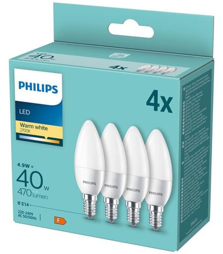 Philips LED-Kerze 4,9W E14 matt 4er Pack 470 Lumen 2700K Ersatz für 40W