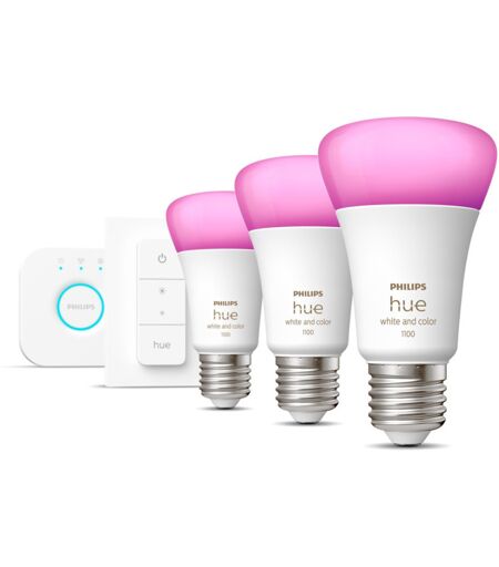 Philips Hue White & Color Ambiance E27 1100lm 3er Starter-Set + Dimmschalter - Weiß