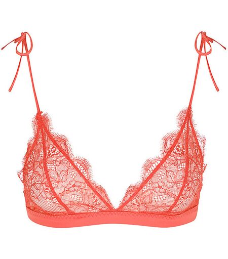 Damen BH aus semitransparenter Spitze Ungepolsterte Cups aus feiner Spitze Verstellbare Träger zum schnüren Schließt mit Hakenverschluss am Rücken Unifarben Träger und Unterbrustband in Satin Optik Farbbezeichnung: Rot Material: 57% Polyamid, 43% Polyamid recycelt ...
