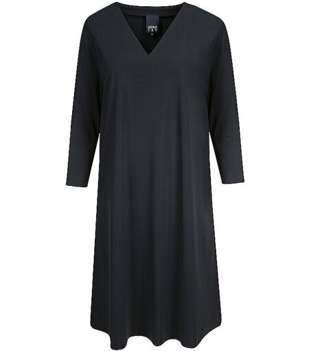 Stylishes Kleid aus elastischem Technojersey V-AUsschnitt 3/4 Ärmel Gerade, legere Schnittführung in dezenter A-Linie Offene Kanten Farbe: Schwarz Gesamtlänge ca. 96 cm Material: 100% Polyester ...
