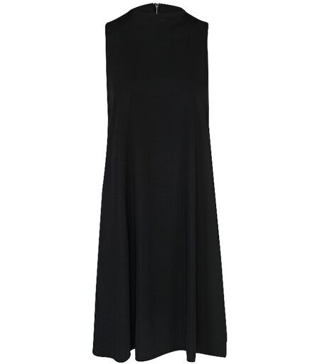 Damen Kleid aus hochwertigem Techno-Material Fließendes Gewebe Stehkragen Schließt mit Reißverschluss auf der Rückseite Ohne Arm A-Linie Unifarben Lockere Passform Knieumspielend Farbbezeichnung: Deep Black Material: 72% Polyamid 28% Elasthan ...