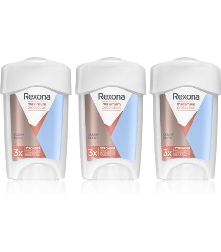 Rexona Maximum Protection Clean Scent, 3x45 ml, Antitranspirant für Damen, Das Antiperspirant Rexona Maximum Protection Clean Scent absorbiert und neutralisiert alle unangenehmen Gerüche. Es verleiht Ihnen Tag für Tag das Gefühl von Frische und Sauberkeit. Das Set beinhaltet: Rexona Maximum Protection Clean Scent Antitranspirant-Creme gegen übermäßiges Schwitzen 45 ml Eigenschaften: verleiht ein lang anhaltendes Gefühl von Wohlbefinden und Sauberkeit schützt vor unangenehmem Geruch hinterlässt ein langzeitiges Frischegefühl sichert eine optimale Absorption des Schweißes Anwendung: Auf die saubere und trockene Haut in der Achselhöhle auftragen. Kann mehrmals täglich benutzt werden. ...