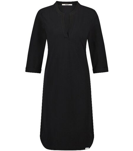 Damen Kleid aus glattem Jersey Tunikaausschnitt 3/4 Ärmel Angenehmer Griff Gerade Passform Überknielänge Unifarben Länge: 113 cm Farbbezeichnung: Black Material: 75% Polyamid 25% Elasthan ...