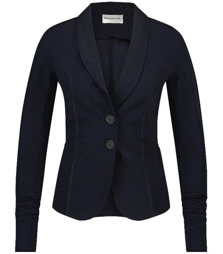 Damen Blazer aus glattem Jersey Angenehmer Griff Hoher Stretchkomfort Schalkragen Einreiher mit zwei Knöpfen zum Verschluss Langarm Schmale Passform Farbe: Navy Material: 72% Polyamid 28% Elasthan ...