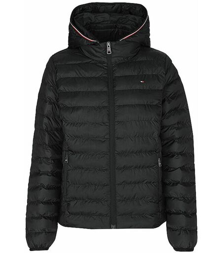 Leichte Damen Steppjacke Stehkragen und abnehmbare Kapuze Schließt mit Reißverschluss Langarm Logo-Stickerei auf der linken Brust Reißverschlusstaschen Elastischer Ärmelabschluss Hoher Tragekomfort Gerade Passform Unifarben Farbbezeichnung: Black Material: 100% Polyester ...