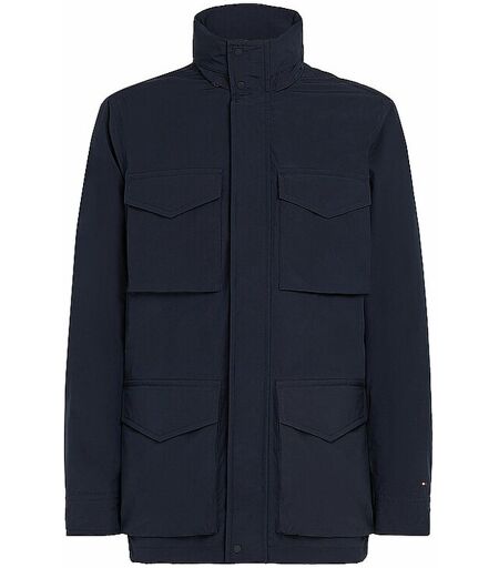 Modische Herren Fieldjacket Stehkragen Langarm Schließt mit Reißverschluss Windschutzleiste mit Druckknopfverschluss Vier aufgesetzte Eingriffstaschen Unifarben Gerade Passform Farbbezeichnung: Blue Material: 100% Polyester (recycelt) ...