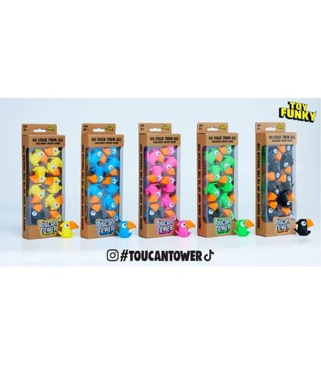 5 verschiedene Farben - Das Spiel: Zeigen Sie Ihre Stapelfähigkeiten und besiegen Sie die Schwerkraft, indem Sie einen perfekt ausbalancierten Tukan-Turm bauen. Stapeln Sie so viele Tukane wie möglich, ohne dass der Turm einstürzt. Spielen Sie alleine oder starten Sie ein Kopf-an-Kopf-Rennen* mit Freunden! Beim Platzieren eines Tukans darf der Turm nicht berührt werden. Sie können mit Ihren Tukanen auch erstaunliche Formen schaffen und sie mit allen Arten von Objekten verbinden. (*Spielen Sie ein Spiel, um zu entscheiden, wer den ersten Tukan in einem Kopf-an-Kopf-Spiel platzieren kann). Toucan Tower Titan: Werden Sie ein Tukan-Turm-Titan, indem Sie einen 9-teiligen hohen Tukan-Turm stapeln. STAPELT SIE ALLE. SPASS HABEN! Toucan Tower Community: Werden Sie Teil der Toucan Tower-Community! Teilen Sie Ihren Tukanturm oder andere tolle Tukankreationen auf @toucantower oder #toucantower. Langlebiges Spielzeug: Der Toucan Tower ist ein langlebiges Spielzeug, das viele Jahre lang Spaß macht und Spieler jeden Alters stundenlang unterhält! Passen Sie gut auf Ihre Tukan-Freunde auf und nehmen Sie sie überallhin mit, um endlosen Stapelspaß zu haben! Bewahren Sie diese Verpackung als Ihre Toucan Tower-Reisebox auf ...