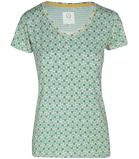 Damen Pyjama T-Shirt aus weichem Jersey V-Ausschnitt Kurzarm Floraler Print Lockere Passform Farbbezeichnung: Verano Green Material: Verano Green Passt zu: 7755302 ...