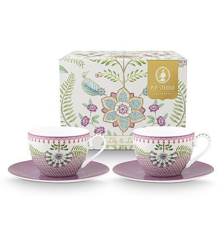 PIP STUDIO Cappuccino Tassen mit Untertassen 2er Set LILY & LOTUS 280ml lila B