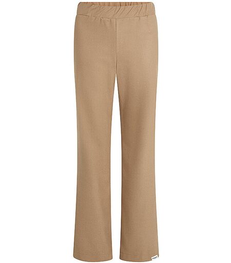 Damen Hose aus angenehmem Stretch-Material Mittelhoher Bund Elastischer Bund Gerader Beinverlauf Logo-Patch am Saum Unifarben Farbbezeichnung: Camel Material: 68% Polyamid, 32% Elasthan ...