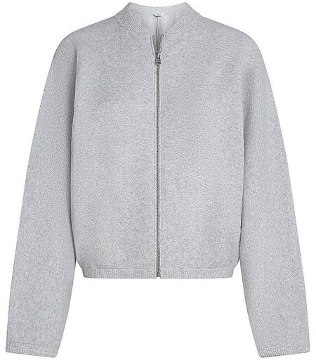 Damen Strickjacke aus Baumwoll-Mischung Stehkragen Schließt mit Reißverschluss Langarm Elastischer Bund Gerade Passform Unifarben Farbbezeichnung: Grey Melange Material: 58% Baumwolle, 38% Polyamid, 4% Elasthan ...