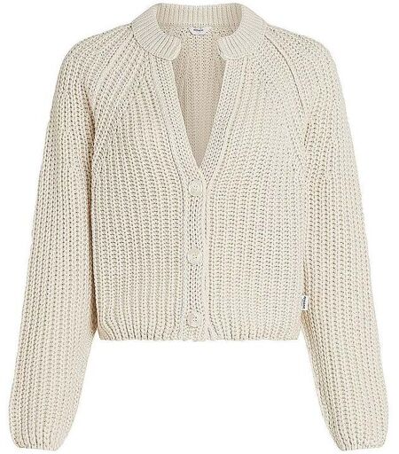 Damen Cardigan aus Strick Kragen V-Ausschnitt Raglanärmel Langarm Schließt mit Knopfleiste Unifarben Lockere Passform Farbbezeichnung: Naturel Material: 100 % Baumwolle ...