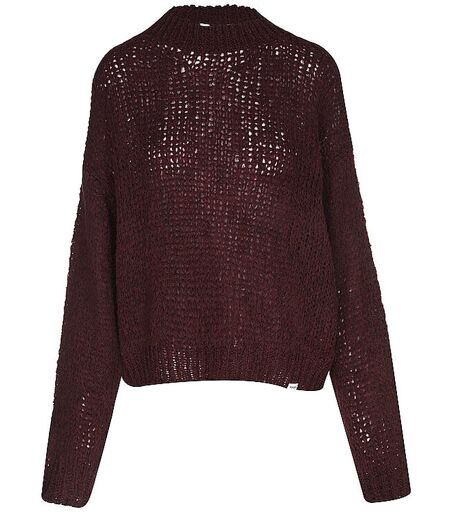 Damen Pullover aus weichem Strick Rundhalsausschnitt Langarm Überschnittene Schultern Rippbündchen an Ärmel und Saum Logo am Saum Unifarben Farbbezeichnung: Aubergine Material: 65 % Polyacryl, 15 % Wolle, 12 % Polyamid, 7 % Alpaka, 1 % Elasthan ...
