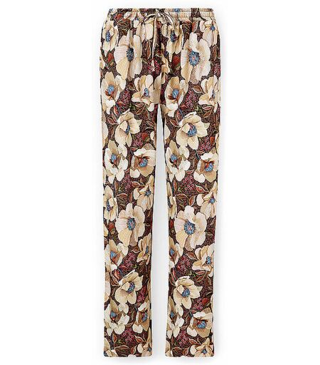Damen Pyjamahose aus Viskos-Jersey Bequemer Bund mit Tunnelzug Seitliche Eingrifftaschen Gerades Bein Hoher Tragekomfort Langes Bein Allover Muster Farbbezeichnung: Brown Material: 95% Viskose, 5% Elasthan ...