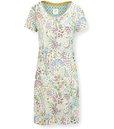 Damen Nachthemd aus hochwertiger Viskose-Stretch-Jersey V-Ausschnitt Kurzarm Allover Print Gerade geschnitten Farbbezeichnung: Querida White Material: 95% Viskose, 5% Elasthan ...