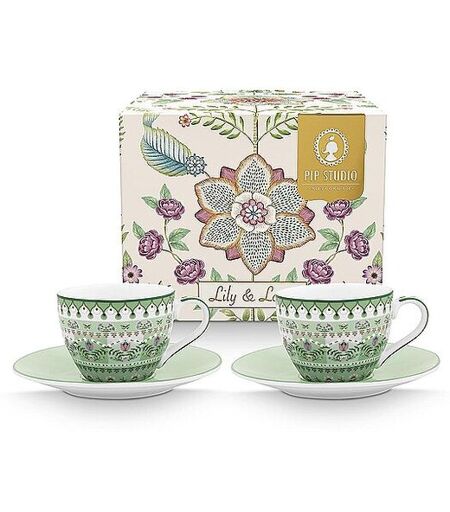PIP STUDIO Espresso Tassen mit Untertassen 2er Set LILY & LOTUS 120ml Light Green hellgrün B