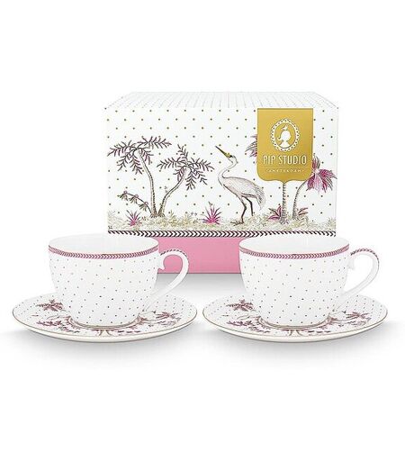 PIP STUDIO Cappuccinotasse mit Untertasse 2er Set 120ml JOLIE DOTS Gold/Pink weiss B