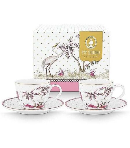 PIP STUDIO Espressotasse mit Untertasse 2er Set 120ml JOLIE DOTS Gold/Pink weiss B