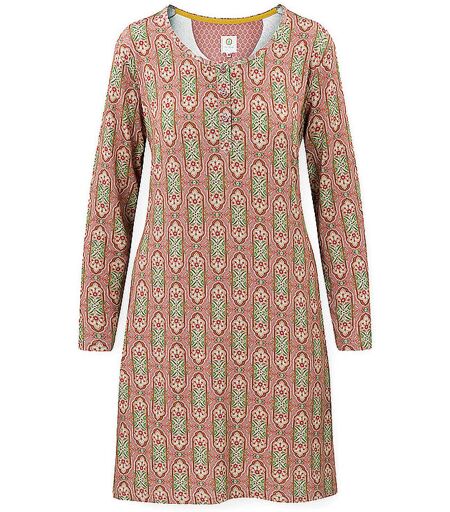 Das Desiree Nachthemd mit langen Ärmeln vereint Komfort und Stil in einer locker geschnittenen Silhouette mit klassischem Rundhalsausschnitt. Der fließende Stoff aus einer weichen, atmungsaktiven Viskosemischung sorgt für ein angenehmes Tragegefühl – ideal für erholsame Nächte und entspannte Morgen. Das filigrane Jabali-Muster aus kleinen Blümchen und Blättern formt ein dekoratives Bogenmotiv und verleiht dem Design eine feminine Note. Perfekt kombinierbar mit einem passenden Kimono oder weiteren Loungewear-Styles für den vollständigen Pip Studio Look. Damen Sleepshirt aus Viskose mit Stretch Rundhalsausschnitt Langarm Alloverprint Knieumspielende Länge Länge: 91 cm Farbbezeichnung: Pink Material: 95% Viskose, 5% Elasthan ...