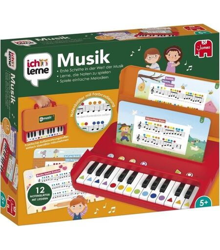 Jetzt kommt Schwung in die heimischen Kinderzimmer, und zwar mit selbst gemachter Musik. Dank dem ich lerne Musik-Set lernen schon die Kleinsten erste Töne und einfache Lieder am Klavier zu spielen. Das kleine, tragbare Piano vermittelt erstes Musikwissen und enthält die Noten für zwölf beliebte Lieder. Neben der kindgerechten Einführung in das Thema Musik schult es die Aufmerksamkeit und fördert die Gehörbildung. Schon nach kurzer Zeit spielen Kinder fehlerfrei einfache Melodien - das für ich lerne typische Selbstkorrektursystem machts möglich. Inhalt: 12 Notenblätter mit beliebten Kinderliedern, 1 Klavier mit Koffer zum Mitnehmen - Mit Ich lerne Musik spielen die Kinder einfache und bekannte Melodien. - Eine erste spielerische Einführung in die Musik mit 12 erweiterbaren Partituren. - Dank der Symbole und Farbcodes braucht man keine Notenkenntnisse! Toll, die Kinder können sich selbst aufnehmen und ihre Musik immer wieder anhören. - Praktisch: Die Notenblätter können im Klavier aufbewahrt werden. Nach dem Schließen kann das Kind das Klavier dank des Kofferformats einfach mitnehmen! - Das Klavier verfügt über ein selbstkorrigierendes System, das das Kind anleitet und es bei Erfolg lobt. ...