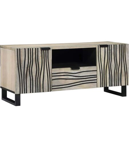 Dieses Media Lowboard zeigt rustikalen Stil und setzt auf natürliche Schönheit und Stabilität – ein echtes Highlight für dein Wohnzimmer. Das charmante Design ist praktisch und sieht gut aus, perfekt zum Ordnen deiner Medien oder Deko. Aus massivem Mangoholz und Holzwerkstoff gefertigt, bringt es einen rustikalen, aber eleganten Touch in jeden Raum und passt super zu modernen und traditionellen Looks. Ob in einem geschäftigen Familienzimmer oder einer ruhigen Ecke, es bietet sowohl Funktion als auch eine gemütliche Atmosphäre. Materialien: Aus massivem Mangoholz gemacht, ist dieses Lowboard robust und für den Alltag geeignet. Das massive Mangoholz sorgt für ein einzigartiges Holzspiel und eine tolle Textur, die seinen rustikalen Charme verstärkt und jedem Stück einen eigenen Charakter verleiht. Der Holzwerkstoff sorgt für mehr Stabilität und Schlagfestigkeit, ohne dabei den schönen Look zu verlieren. Inklusive Komponenten: Das Lowboard bietet clever gestaltete Stauraumfächer für all deine Organisation. Als Medienmöbel haben die geräumigen Fächer Platz für DVD-Player, Konsolen oder stylische Deko-Teile. Es punktet in Sachen Funktionalität und Aussehen und ist ein Muss für jedes Wohnzimmer. Merkmale / Funktion / Design: Das Design ist eine perfekte Kombination aus Stil und Nützlichkeit. Die rechteckige Form ist ideal, um Medienteile zu verstecken oder toll in Szene zu setzen. Die Türen sorgen für einfachen Zugang, während die weniger hübschen Sachen draußen bleiben. Dieses Design spart Platz und passt super in die gemütliche Atmosphäre eines rustikalen Interieurs und macht es noch praktischer für moderne Wohnungen. Empfohlene Verwendungen: Dieses vielseitige Lowboard ist mehr als nur ein Medienmöbel – es ist ein Alleskönner, der in Wohnzimmer und Heimkinos funktioniert. Die große Oberfläche ist perfekt, um deinen Fernseher oder Deko zu präsentieren, während der Stauraum alles ordentlich hält. Seine rustikale Eleganz verbindet verschiedene Einrichtungsstile und bringt praktischen Flair mit. Pflege & Wartung: Um das Stück in Topform zu halten, ab und zu mit einem trockenen Tuch abstauben. Vermeide scharfe Chemikalien, die das natürliche Holzspiel ruinieren könnten. Bei hartnäckigem Schmutz ein bisschen Feuchtigkeit auf das Tuch geben, damit das Holz über die Jahre schön bleibt. ...