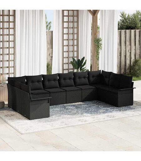 vidaXL Garten-Sofa-Set mit Kissen 10 pcs Schwarz Poly Rattan