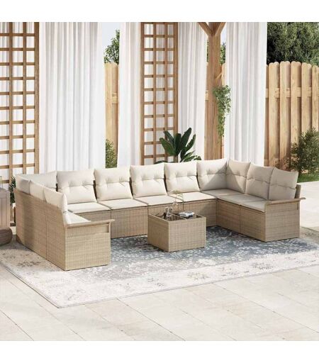 vidaXL Garten-Sofa-Set mit Kissen 11 pcs Beige Poly Rattan