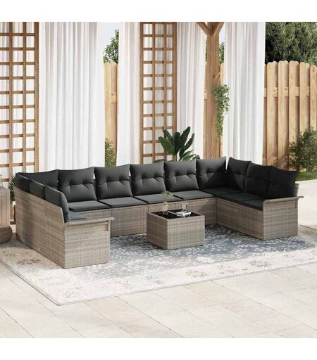 vidaXL Garten-Sofa-Set mit Kissen 11 pcs Hellgrau Poly Rattan