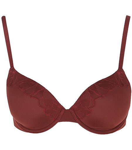Damen BH mit Bügel Spitzendetails Verstellbare Träger Klassischer Haken- und Ösenverschluss Unifarben Gefüttert Farbbezeichnung: Red Material: 71% Polyamid, 29% Elasthan ...