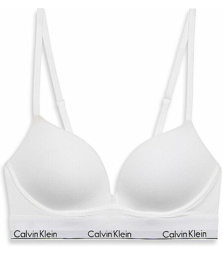 Damen Push Up BH aus Baumwoll-Modal-Mischung mit Stretch-Anteil Schmale, verstellbare Träger Gepolsterte Cups Elastischer Bund mit Logo-Print Unifarben Farbbezeichnung: White Material: 53% Baumwolle, 35% Modal, 12% Elasthan ...