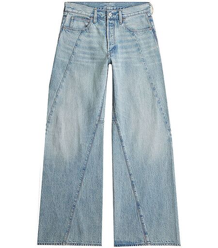 Damen Jeans aus kompaktem Denim Mittlere Leibhöhe Schließt mit Knopf- und Reißverschluss 5-Pocket-Style Weites Bein Zulaufendes Beinende Unifarben mit heller Waschung Farbbezeichnung: Sun Faded Pacific Blue Material: 100% Baumwolle ...