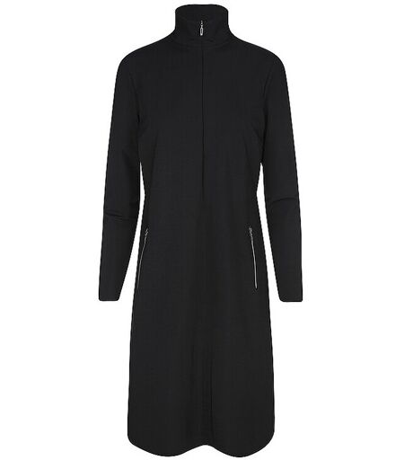 Das Tamo Kleid verbindet moderne Eleganz mit funktionalem Design. Gefertigt aus einem schweren, strukturierten Travel-Stoff, überzeugt es durch klare Linien und angenehmen Tragekomfort. Der Stehkragen mit halbem Reißverschluss setzt einen zeitgemäßen Akzent, während zwei Reißverschlusstaschen vorn praktische Details bieten. Ein vielseitiges Piece – ideal für stilvolle Auftritte im Alltag oder auf Reisen. Damen Kleid aus elastischem Gewebe Stehkragen Schließt mit Reißverschluss Langarm Seitliche Eingrifftaschen mit Reißverschluss Unifarben Länge: Ca: 97 cm Farbbezeichnung: Black Material: 74 % Polyamid, 26 % Elasthan ...