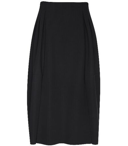 Damen Midirock aus Stretch Zwei Eingrifftaschen Falten-Details Tulpenform Unifarben Farbbezeichnung: Black Material: 73% Polyamid, 27% Elasthan ...