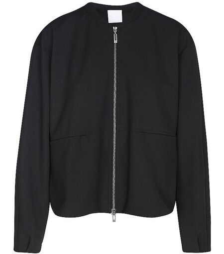 Damen Blouson aus kompakten Material Langarm V-Ausschnitt Schließt mit durchgehendem Reißverschluss Bündchen am Kragen Unifarben Reguläre Passform Farbbezeichnung: Black Material: 74% Polyamid, 26% Elasthan ...