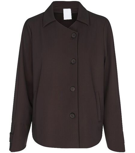 Die Misato-Jacke ist aus hochwertigem, doppellagigem Travel Jersey gefertigt – einem strukturierten Material mit weicher Zwischenschicht. Als das robusteste Travel-Gewebe unserer Kollektion vereint es strapazierfähigen Komfort, dezenten Stretch und eine klare, anspruchsvolle Optik. Mit geradem Schnitt, klassischem Kragen und asymmetrischer Knopfleiste bringt die Jacke eine moderne Note in klassische Tailoring-Designs. Damen Jacke aus Jersey Klassischer Kragen Schließt mit Knopfleiste Langarm mit Riegel Seitliche Eingrifftaschen Gerade Passform Unifarben Farbbezeichnung: Dark Brown Material: 73 % Plyamid, 27 % Elasthan ...