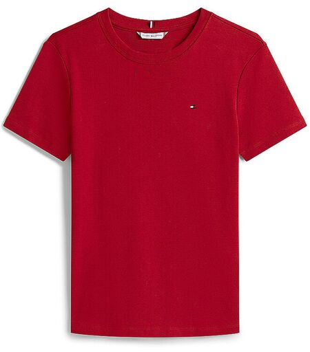 Damen T-Shirt aus reiner Baumwolle Kurzarm Logostickerei auf der Brust Schmale Passform Farbbezeichnung: Red Material: 100% Baumwolle ...