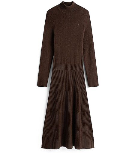Damen Midikleid aus reiner Wolle Rollkragen Langarm Logo-Stickerei auf der Brust Gerippter Rock Leicht ausgestellte Passform Unifarben Farbbezeichnung: Brown Material: 100% recycelte Wolle ...