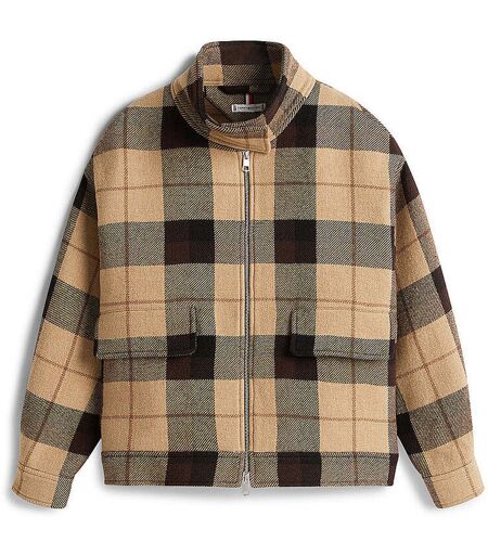 Damen Jacke aus recycelter Wolle Stehkragen Schließt mit Zwei-Wege-Reißverschluss Langarm mit Manschetten Eingrifftaschen mit Patten Karomuster Gerade Passform Farbbezeichnung: Brown Material: 72% recycelte Wolle, 25% Polyamid, 3% recycelter Kaschmir ...