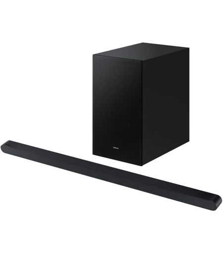Erleben Sie ein immersives Klangerlebnis in Ihrem Zuhause mit der Samsung HW-S700D/EN Soundbar. Diese erstklassige Soundlösung bietet Ihnen eine beeindruckende Audioqualität für Ihre Filme, Musik und Spiele. Mit der Unterstützung für Dolby Digital Plus genießen Sie einen klaren und detailreichen Sound, der Sie mitten ins Geschehen eintauchen lässt. Das schlanke und moderne Design der Soundbar fügt sich nahtlos in jedes Wohnzimmer ein und schafft ein elegantes Ambiente. Produkt-Highlights: Wireless Dolby Atmos:: Erstmals unterstützen Samsung Soundbars die objektbasierte Audiotechnologie Dolby Atmos kabellos. Erleben Sie ein packendes Entertainment-Erlebnis, bei dem Sie komplett vom Klang umgeben werden und Sound eindrucksvoll in seiner ganzen Tiefe erfahren können. Durch das weltweit erste kabellos verbundene Dolby Atmos-Surround-Sound-System brauchen Sie dafür kein HDMI Kabel mehr. ; Ultraschlankes Design:: Ein optisches Highlight für dein Heimkino. Die Ultra Slim Dolby Atmos Soundbar überzeugt nicht nur mit atemberaubendem Sound sondern auch mit einem ultraschlanken, eleganten Design. Sie können sie nicht nur vor Ihrem Fernseher platzieren, sondern auch mit Ihrem TV zusammen an die Wand montieren. ; Q-Symphony:: Genießen Sie die perfekte Klangharmonie. Durch das optimale Zusammenspiel und die gleichzeitige Nutzung von TV- und Soundbar Lautsprechern wird eine voluminöse und dreidimensionale Sound-Kulisse erzeugt. Mit der geballten Kraft der Speaker können Sie noch tiefer als je zuvor in Ihre Lieblingsinhalte eintauchen und haben das Gefühl, mittendrin zu sein.; SpaceFit Sound 2.0:: SpaceFit Sound analysiert die Beschaffenheit Ihres Raums und kalibriert automatisch das Klangfeld für ein optimales Sounderlebnis.; Komponenten Soundbar; Subwoofer; Leistungs-/Elektronikeigenschaften Ausgangsleistung, gesamt: 250 W; Anzahl Kanäle: 3.1; integrierter Center-Lautsprecher; virtueller Surround-Sound; Dolby Atmos; Dolby-Digital-Plus kompatibel; Digital-Theater-Systems (DTS) kompatibel; Dolby-TrueHD kompatibel; autom. Pegeleinmessung über Mikrofon; Datenverbindung zwischen Video und TV; AAC + MP3 Standard; WAV kompatibel; OGG-Vorbis kompatibel; FLAC kompatibel; Apple Lossless (ALAC) kompatibel; AIFF kompatibel; Sinusleistung gesamt: 250 W; Bedienung Google Assistant kompatibel; Sprachsteuerung möglich; Fernbedienung; Funktionserweiterung über App (via Smart Things App); Airplay kompatibel; Spotify Connect kompatibel; Lautsprecher-System: 7 eingebaut. Lautsprecher; Wandmontage möglich; Subwoofer Aktiv-Subwoofer; Anschlüsse 1 x HDMI-Schnittstelle (OUT); Airplay fähig; WLAN-Schnittstelle; Bluetooth-Schnittstelle (V 5.2); Leistungsaufnahme Leistungsaufnahme: 46 W; Leistungsaufnahme, Stand-By: 1 W; Gehäuse-Eigenschaften Breite, Soundbar: 89 cm; Höhe, Soundbar: 3.8 cm; Tiefe, Soundbar: 3.99 cm; Gewicht, Soundbar: 1 kg; Breite, Subwoofer: 20.5 cm; Höhe, Subwoofer: 35.3 cm; Tiefe, Subwoofer: 30.2 cm; Gewicht, Subwoofer: 6 kg; Farbe schwarz; ...