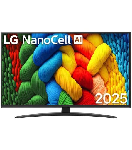 Der LG NANOCELL AI TV NANO81 – reinste Farben in unglaublicher Brillanz: Erlebe mit dem LG NanoCell TV NANO81 Farben in ihrer reinen Form. Das 4K NanoCell-Display mit LED-Backlight bietet reine Farben in unglaublicher Brillanz. Der leistungsstarke α7 Gen8 4K AI-Prozessor optimiert Bild und Sound für ein unvergleichliches Seherlebnis. Und das ganz automatisch. Genieße kinogleiches Entertainment mit dem Filmmaker Mode und erleichtere dir die Bedienung mit webOS 25 und der AI Magic Remote-Fernbedienung. Dank HGiG-Unterstützung tauchst du auch beim Gaming in realistische HDR-Welten ein. Entdecke den neuen LG NanoCell TV NANO81. Bild-Eigenschaften108 cm Bilddiagonale; 43 Zoll Bilddiagonale; 16:9 Format; 3840 Pixel, horizont.; 2160 Pixel, vertikal; Spiele-Schaltung; automatische Raumlichtanpassung; LED-Hintergrundbeleuchtung; Multi-PiP; Elektronik-EigenschaftenHDR-Wiedergabe; 4K Signalkonvertierung; Ultra HD; Auto Low Latency Mode (ALLM); Sprachsteuerung; Bildschirmanzeigen (OSD); mehrsprachiges Menü; elek. menügest. TV-Programmführung (EPG); Datenverbindung zwischen Video und TV; Idealwert-Funktion Bild/Ton; USB-Aufnahmefunktion; zeitversetzte Wiedergabe; Medienwiedergabe über USB; Smart TV AusstattungAmazon Prime Video; Netflix; Amazon Alexa kompatibel; HbbTV; Online Apps erhältlich; Online Videodienste abrufbar; steuerbar über Smartphone/Tablet; Smartp.-/Tabl. Inhalte kabellos streamen; Google Assistant kompatibel; Dolby-ProLogic-DekoderDolby-Digital-Dekoder (AC-3); Ton-Eigenschaftenverdeckte Lautsprecher; Breitband-Lautsprecher; Musikleistung gesamt: 20 W; EmpfangseigenschaftenUHDTV-Empfang; DVB-T2; DVB-S2; DVB-C; analoger Kabelempfang; Wiedergabe-StandardsH.264 kompatibel; H.265 kompatibel (HEVC); AnschlüsseDigital-Optisch (OUT), Audio; Bluetooth-Schnittstelle; Common-Interface (CI+); 1 x Common-Interface (CI+); 3 x HDMI-Schnittstelle (IN); eARC (Enhanced Audio Return Channel); USB-Schnittstellen: 2; WLAN integriert; Ethernet LAN; LeistungsaufnahmeAngabe gem. EU-Verordnung 2019/2013; Energieeffizienzklasse G; Spektrum [A bis G]; Energieeffizienzklasse HDR-Wiedergabe G; min. Netzspannung: 100 V; max. Netzspannung: 240 V; Leistungsaufnahme, Stand-By: 0,5 W; 54 kWh/1000h Energieverbrauch; 83 kWh/1000h Energieverbr. HDR-Wiedergabe; Öko-Schalter/Stromsparschaltung; Gehäuse-EigenschaftenBreite: 96,7 cm; Höhe: 62,9 cm; Tiefe: 24,9 cm; Breite ohne Standfuß: 96,7 cm; Höhe ohne Standfuß: 56,4 cm; Tiefe ohne Standfuß: 5,71 cm; Wandmontage möglich; VESA kompatibel; Tisch- und Wandgerät; ...