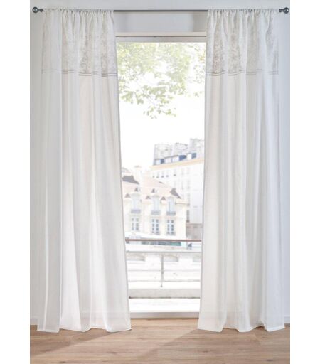 Dieser Vorhang im Landhaus-Stil überzeugt durch seine feine Details wie die schmückende Stickerei und zarte Häkelkante. Der Stoff aus Bio Baumwolle ist im unteren Bereich transparent. ...