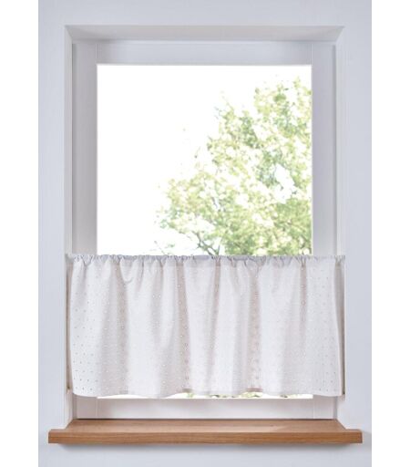 Verwandle deine Küche in einen Raum voller Charme und Privatsphäre mit unserer blickdichten Küchengardine aus Bio-Baumwolle. Die florale Lochstickerei verleiht dieser Küchengardine eine raffinierte Textur und einen Hauch von Romantik, der jeden Raum verschönert. Der Baumwollstoff an sich ist blickdicht, aber durch die Lochstickerei gelangt Tageslicht hindurch. ...