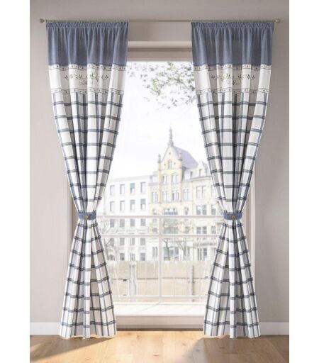 Landhaus-Ambiente pur bietet dieser Vorhang. Der hübsche Blumendruck und das gewebte Karo-Design runden den Landhaus-Look perfekt ab. Der Vorhang ist aus hochwertiger Bio-Baumwoll-Qualität gefertigt und ist im Küchenbereich als auch im Essbereich eine tolle Dekoration an Deinem Fenster. Besonders dekorativ sind auch die Knöpfe in Holz-Optik an den Schlaufen zum Öffnen wodurch das Anbringen an der Gardinenstange mühelos gelingt. Der Vorhang ist ein toller Blickfang an jedem Fenster. ...